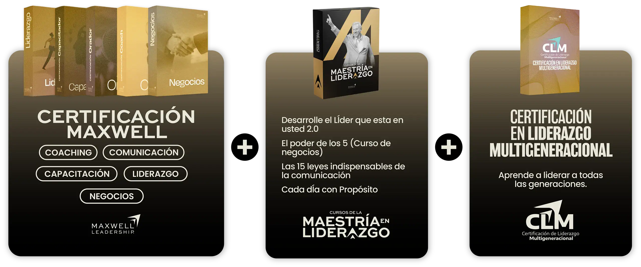 Incluye la Certificación Internacional en Liderazgo Maxwell, la Maestría en Liderazgo con John C. Maxwell, y (en pago completo) la Certificación en Liderazgo Multigeneracional, además de mentorías semanales en vivo, acceso vitalicio a la plataforma, comunidad VIP y el evento exclusivo de Black Week.